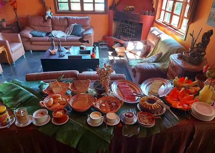 Pousada Sitio da Terra e Arte oferece uma maravilhosa experiência com comodidades como piscina ao ar livre e um restaurante de cozinha italiana. Seus 10 quartos possuem varanda com vista para o jardim e Wi-Fi gratuito. Além disso, o local é conhecido por sua oferta de trilhas e atividades ao ar livre, permitindo que os hóspedes aproveitem plenamente a beleza da região. A Pousada está situada a 36 km do Templo Zu Lai e possui estacionamento privativo gratuito para conveniência dos visitantes. O café da manhã é servido de forma buffet, oferecendo opções para todos os gostos.